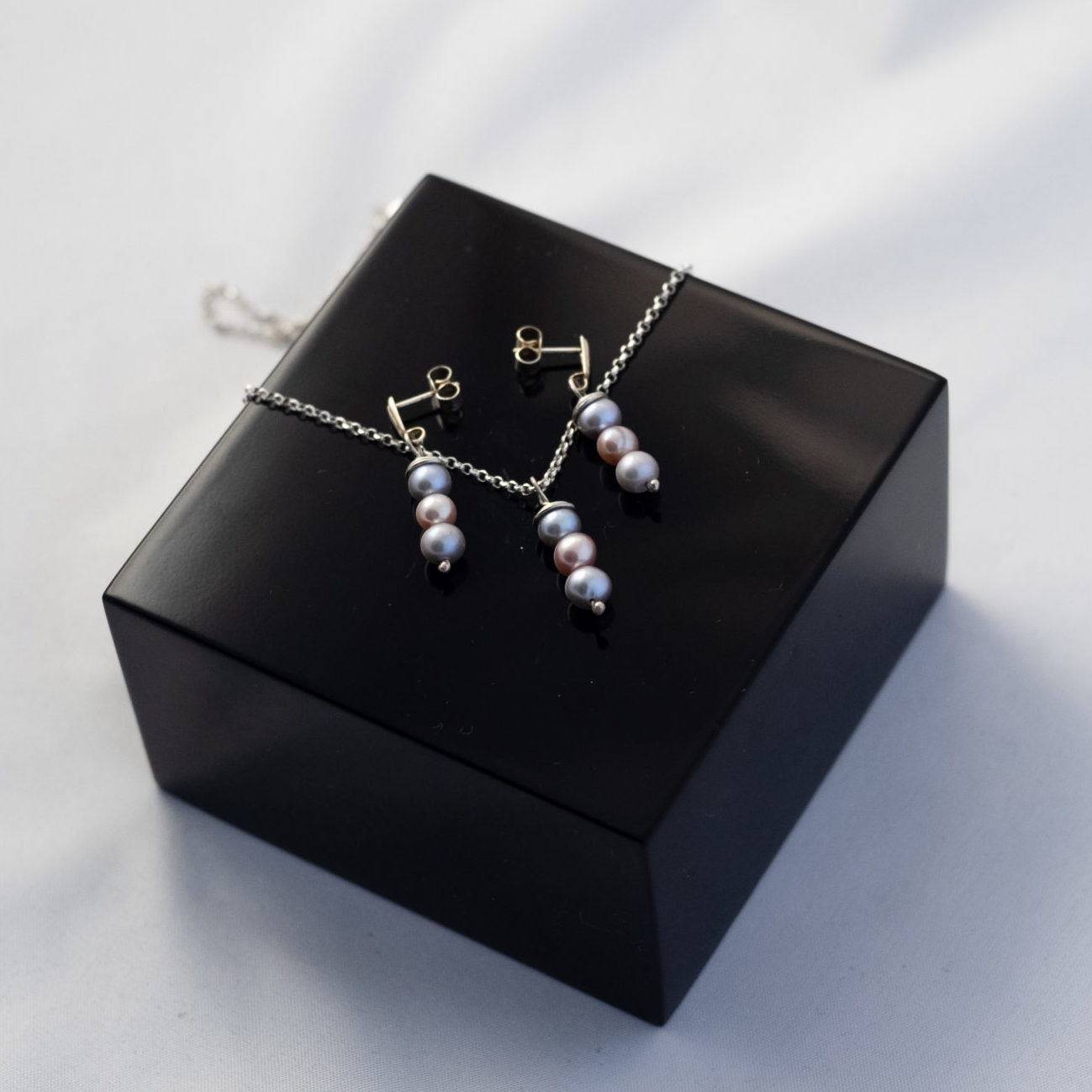 A handmade silver and pearl pendant made in Macclesfield. Made with 5mm potato round cultured freshwater pearls.
